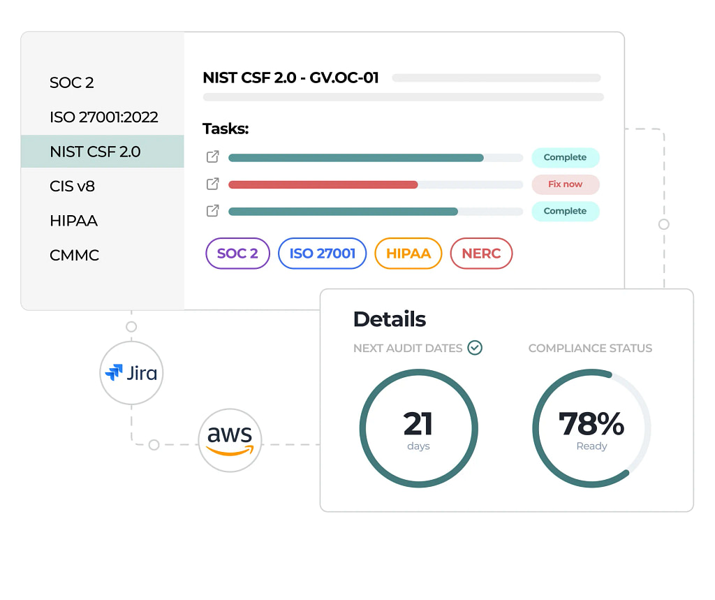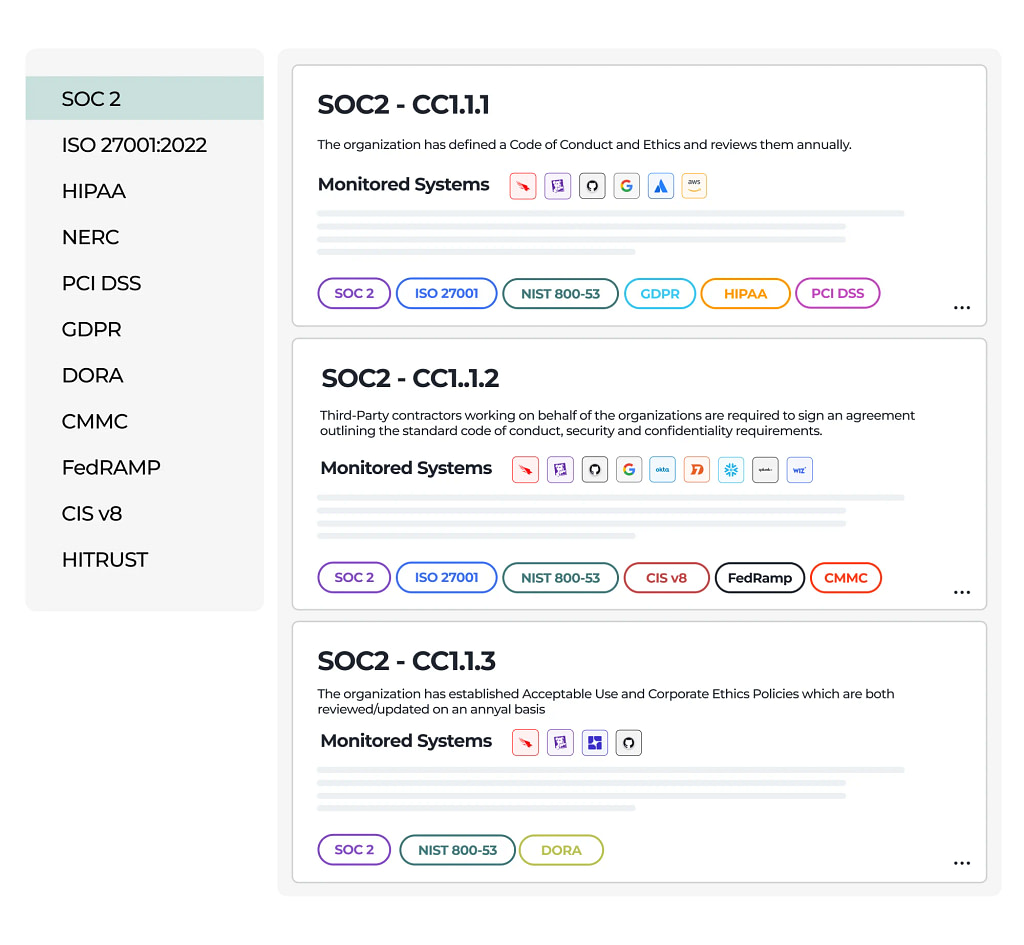 Automate evidence collection and control monitoring by integrating with your systems
